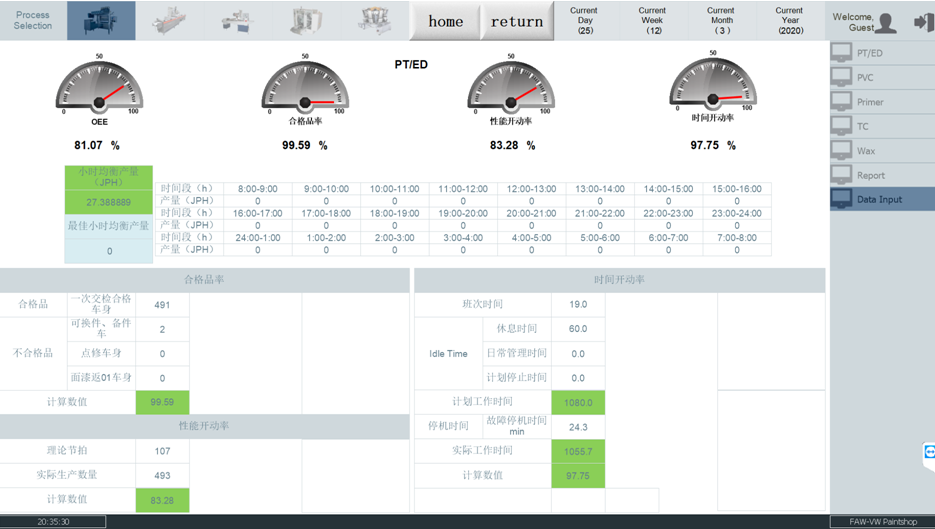 涌明OEE系統(tǒng)由3個(gè)因素組成 時(shí)間開動(dòng)率:實(shí)際工作時(shí)間與計(jì)劃工作時(shí)間的比值。 性能開動(dòng)率:理論節(jié)拍*實(shí)際生產(chǎn)數(shù)量/(實(shí)際工作時(shí)間*3600)。 合格品率:合格品/(合格品+不合格品)。 工作流程 配置配方元素:配置各個(gè)工藝的配置參數(shù)。 實(shí)時(shí)采集生產(chǎn)數(shù)據(jù):采集計(jì)算需要的每個(gè)工藝的生產(chǎn)數(shù)據(jù)數(shù)據(jù)。 查詢數(shù)據(jù):根據(jù)日期查詢指定時(shí)間內(nèi)的數(shù)據(jù)。 生成報(bào)表: 生成指定時(shí)間內(nèi)的報(bào)表。 |